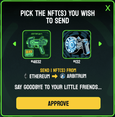 2. PICK HOP: This option only allows you to send full $GUN tokens to another chain. But it allows you to select the $GUN token (NFT) you wish to send. This will preserve the rarity.